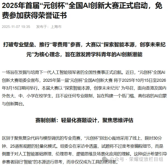 “人工智能不是替代创造力的工具,而是拓展想象力边界的超级引擎。” ——「元创杯」组委会